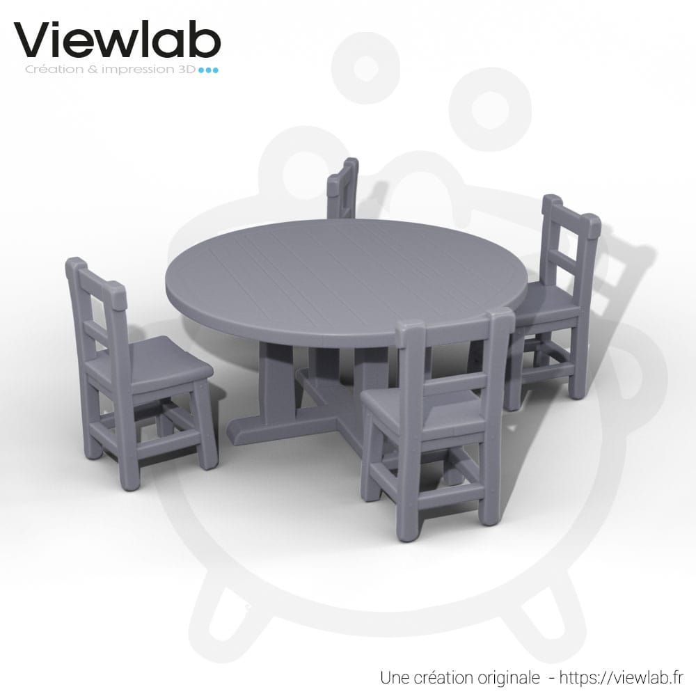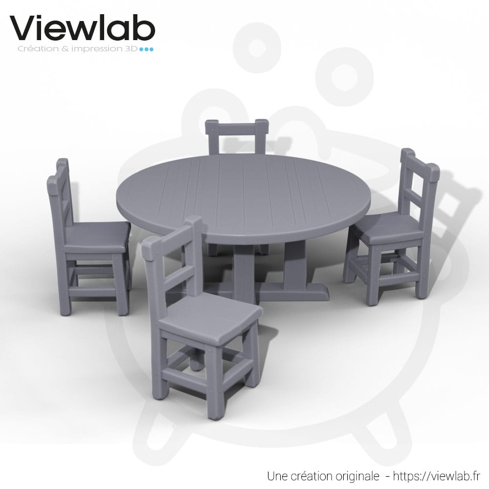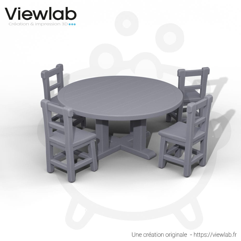 • Contenu : 1 table ronde, 4 chaises.