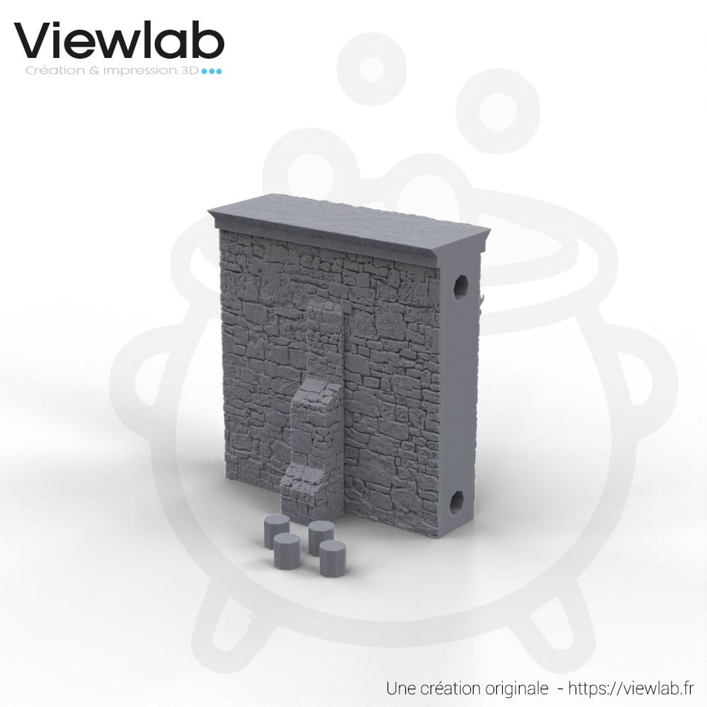 Ces sections de murs représentent les fondations de votre auberge. Elles permettent de construire une enceinte robuste et réaliste. La gravure de la pierre apparente est profonde, idéale pour un rendu visuel fort sur table de jeu. Grâce à la modularité par tétons, vous pouvez changer la disposition de vos murs d’une partie à l’autre pour renouveler l’expérience tactique.