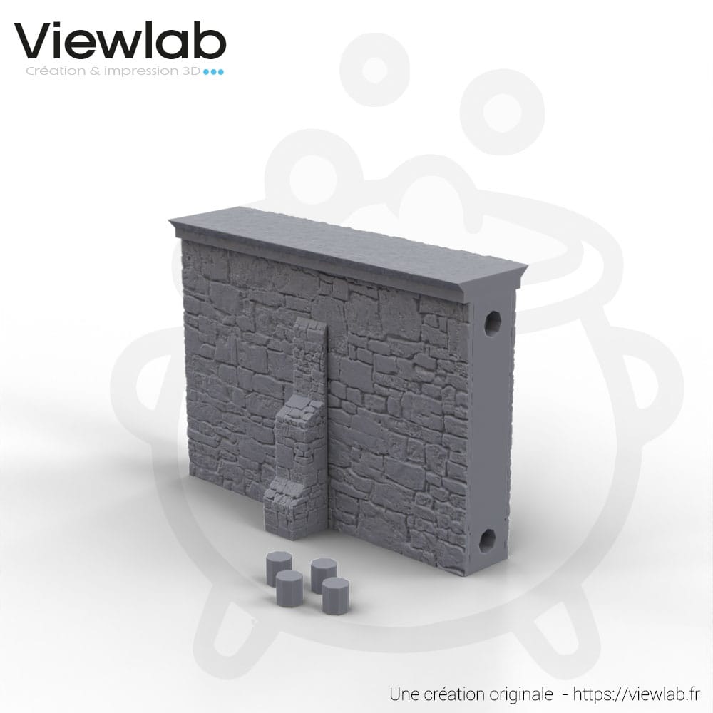Ces sections de murs représentent les fondations de votre auberge. Elles permettent de construire une enceinte robuste et réaliste. La gravure de la pierre apparente est profonde, idéale pour un rendu visuel fort sur table de jeu. Grâce à la modularité par tétons, vous pouvez changer la disposition de vos murs d’une partie à l’autre pour renouveler l’expérience tactique.