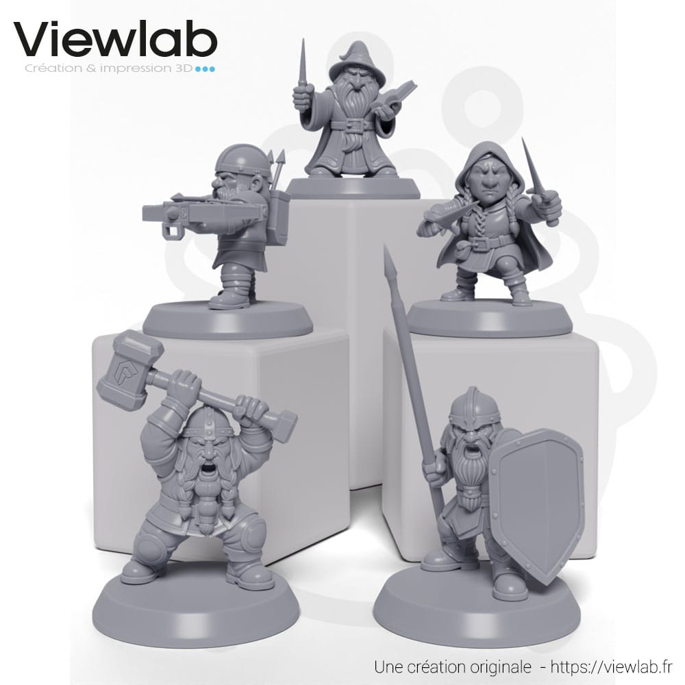 Compagnie complète de figurines naines fantasy pour jeux de rôle et jeux de plateau.